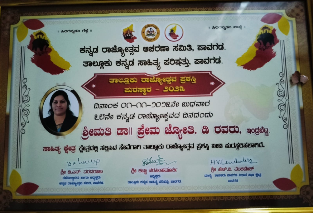 DR. PREMAJYOTHI.D KANNADA RAJYOTSAVA AWARD 2023